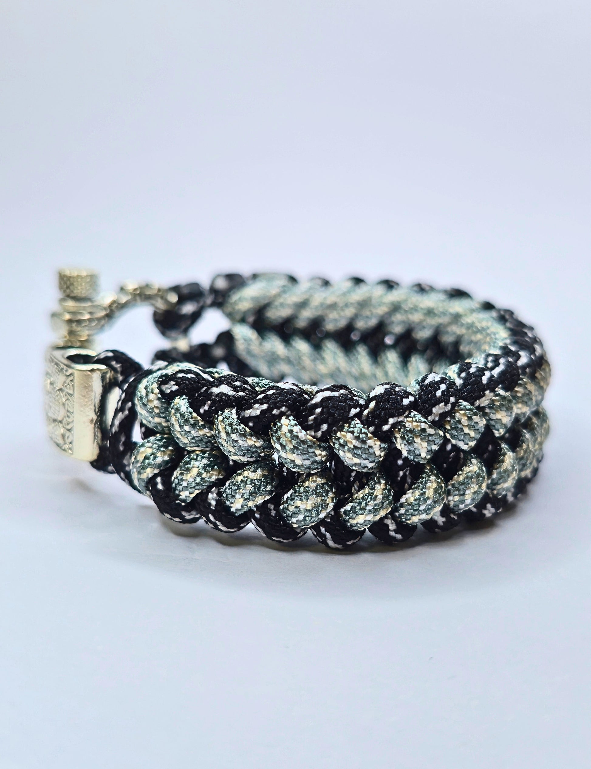 Robust, ausdrucksstark und einzigartig – dieses handgefertigte Paracord-Armband vereint traditionelles Handwerk mit nordischer Symbolik.